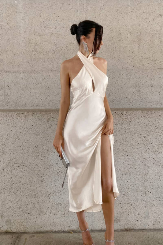 Regular price $69.50 USDRegular priceUnit price / perSale price $69.50 USDSolid Halter Neck Satin Dress