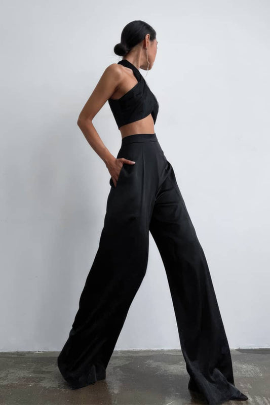 Simulated Silk Satin Draped Ice Silk Wide-Leg Trousers