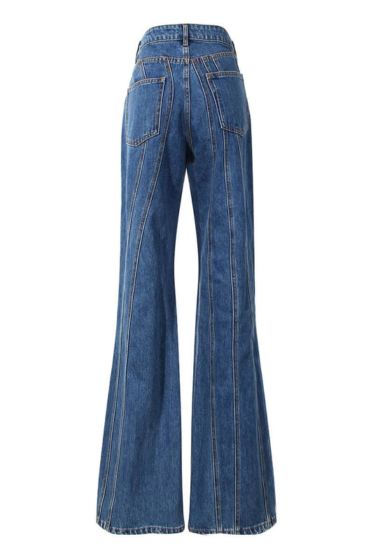 Asymmetric Waistline Denim Jeans with Multiline Patchwork