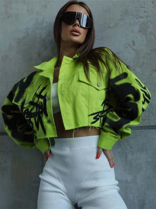 Denim Jacket Loose Cotton Printed Heavy Industry Women's Top