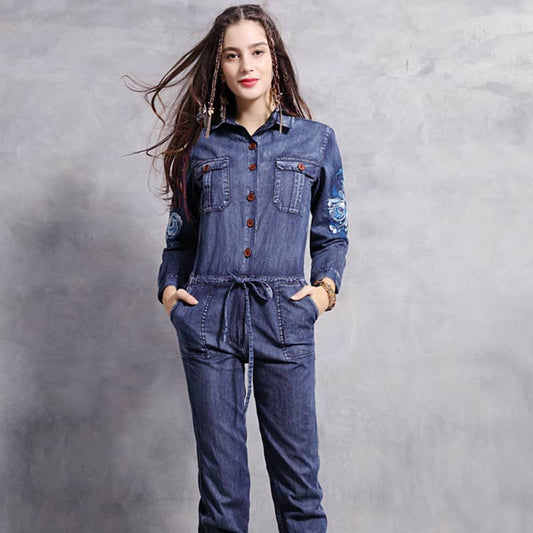 Regular price $118.97 USDRegular priceUnit price / perSale price $118.97 USDEmbroidered denim high waist jumpsuit for women