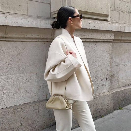 Women's woolen lapel bat sleeve coat