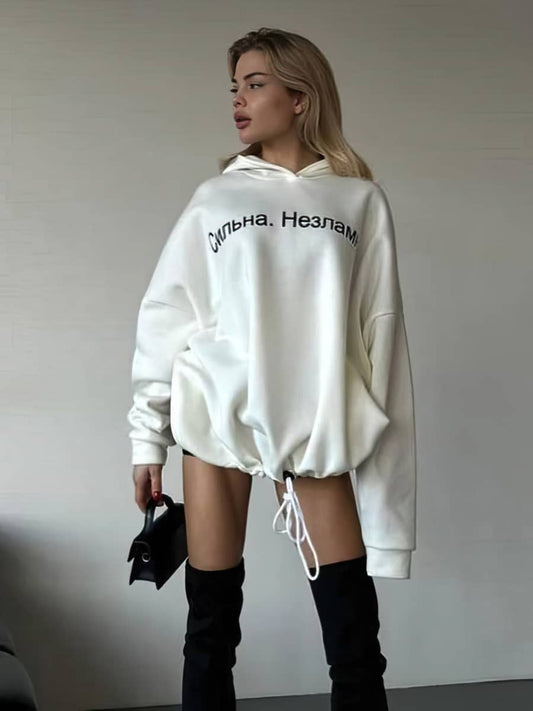 Letter print loose hooded sweatshirt