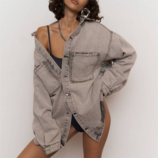 Women's denim shirt cardigan jacket