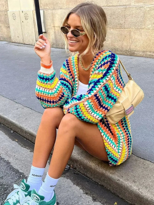 Colorful Striped Crochet Cardigan Sweater