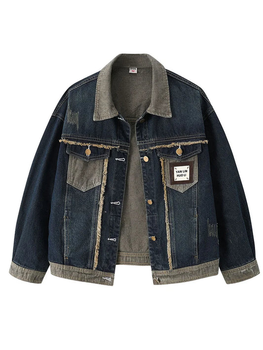 Vintage Blue Spliced Denim Jacket