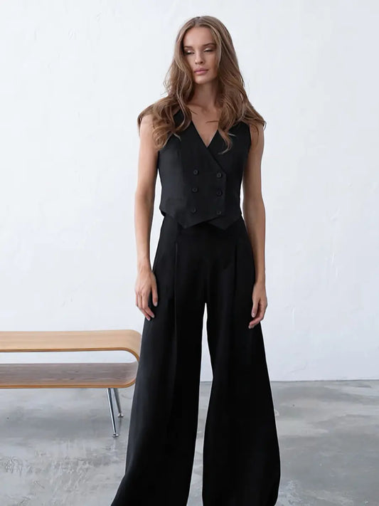 Zweiteiliges Set aus ärmelloser Weste und Hose mit V-Ausschnitt