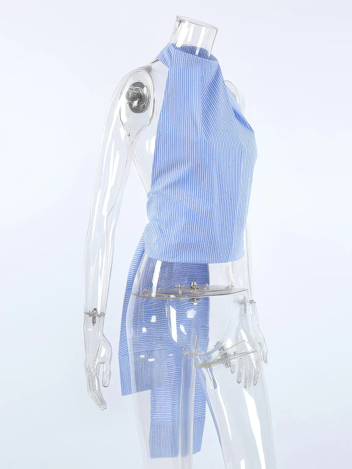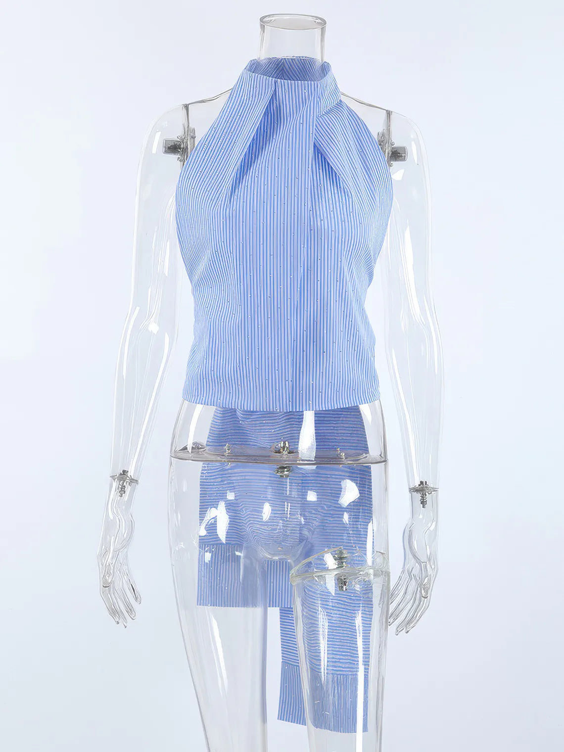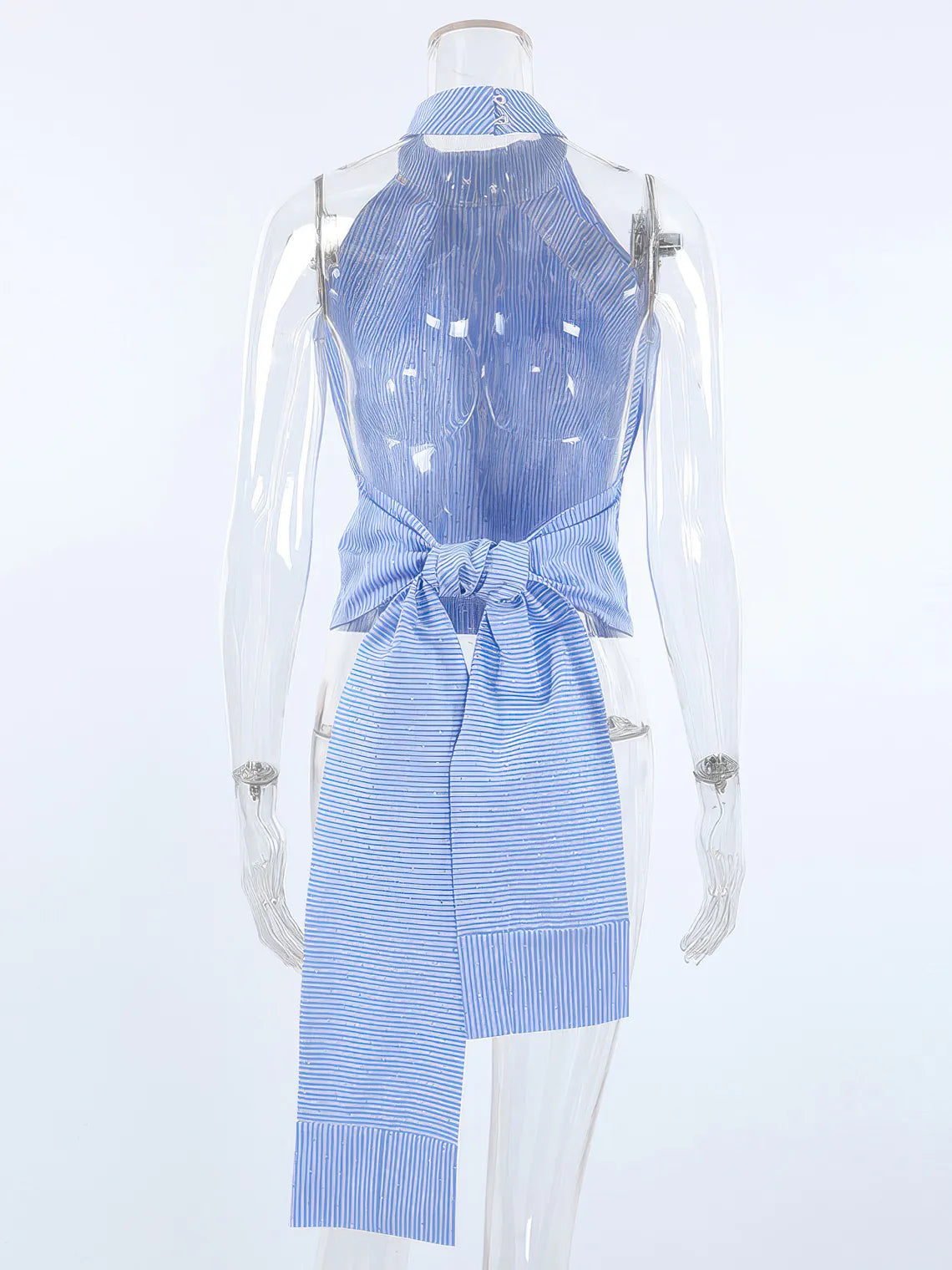 Elevate your style with this Halter Neck Backless Striped Camisole. Its flattering halter neckline and bold striped pattern create a chic, eye-catching look, while the backless design adds a touch of daring elegance. Perfect for warm days or layered under jackets, this camisole offers both comfort and confidence for any occasion.