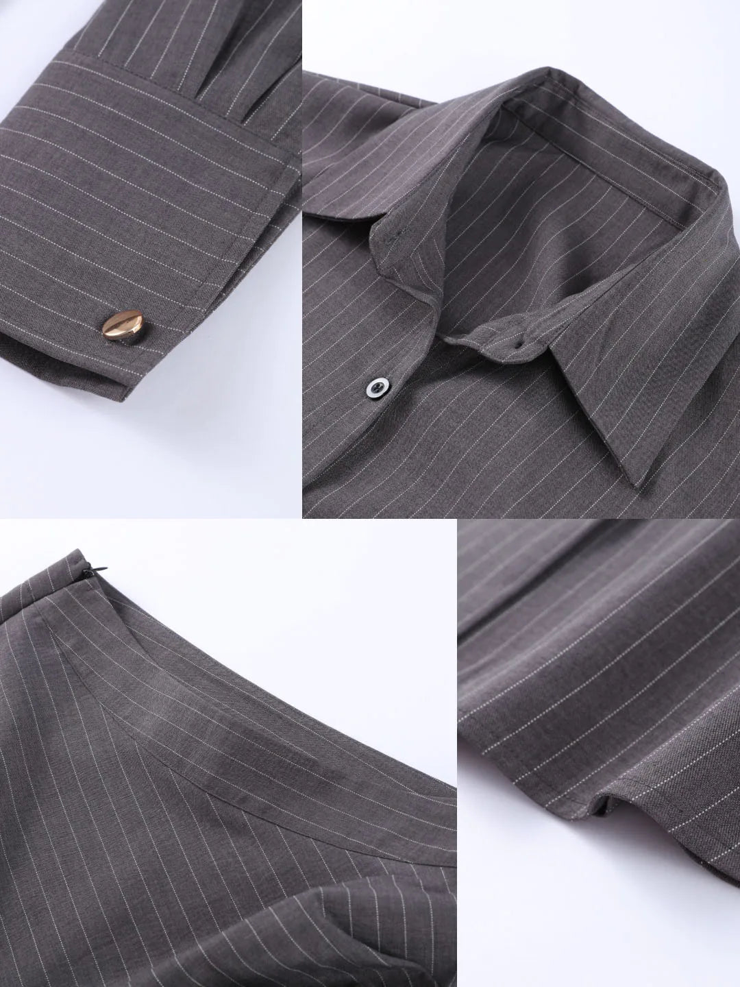 Elevate your wardrobe with this Striped Long-Sleeved Shirt and Skirt Set, designed for effortless style and comfort. The classic stripes add a timeless touch while the coordinated pieces create a polished look perfect for any occasion. Made with soft, breathable fabric, this set ensures all-day comfort and easy movement. Whether for work or weekend outings, enjoy a versatile outfit that combines chic design with practical wearability.