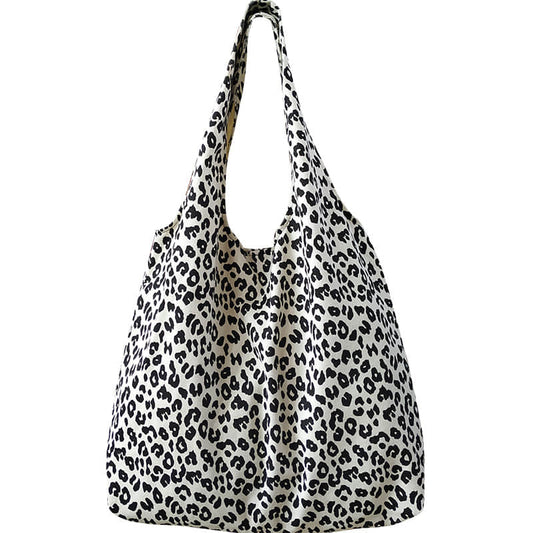 Retro leopard print shoulder bag women fashion simple portable canvas bag