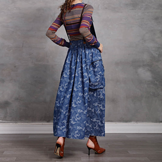 Sweet V-neck collage print suspender dress