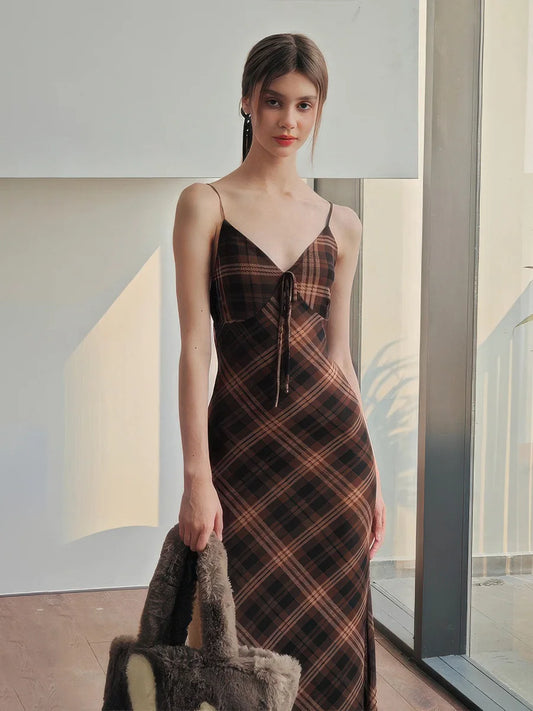 Robe à bretelles ajustée à carreaux vintage