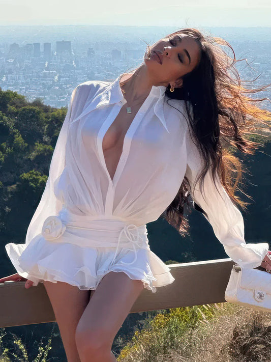 Prix habituel $57.00 USDPrix habituelPrix unitaire / parPrix promotionnel $57.00 USDRobe blanche transparente au niveau des hanches