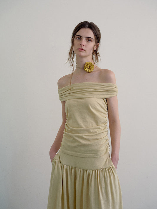 Robe de soirée amincissante à col oblique et fente