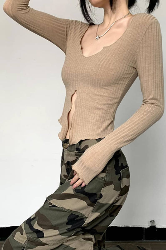 Prix habituel $43.00 USDPrix habituelPrix unitaire / parPrix promotionnel $43.00 USDJupe pull en tricot fendue à col en V