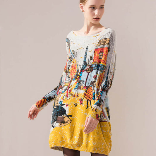 Pull imprimé abstrait ample et simple