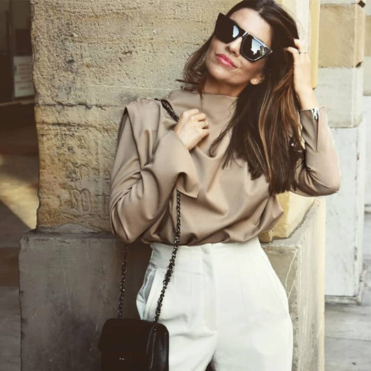 Chemise à col roulé à la mode lâche Haut à manches longues pour femmes
