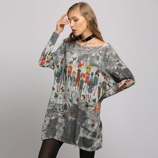 Pull imprimé manches chauve-souris femme grandes tailles