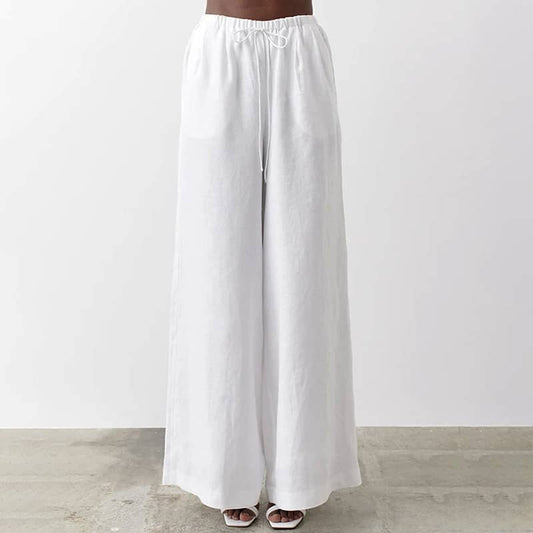 Pantalon ample ample décontracté en coton et lin fin