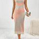 This beautiful knitted striped long dress is a must-have for any fashion-forward wardrobe. Made from high-quality materials, it's both comfortable and stylish. With its chic design and flattering fit, you'll feel confident and effortlessly put-together. Elevate your look with this versatile dress for any occasion.