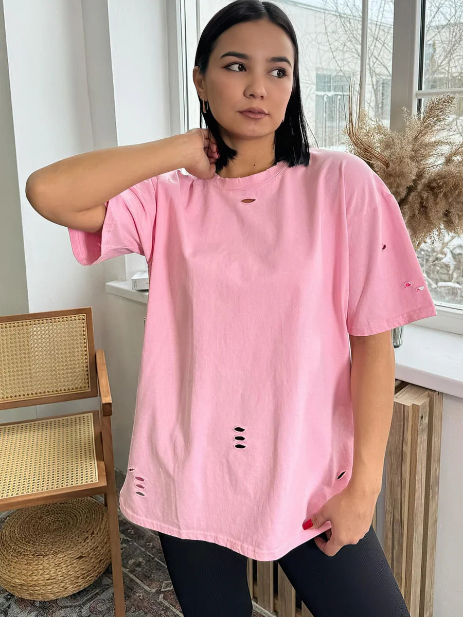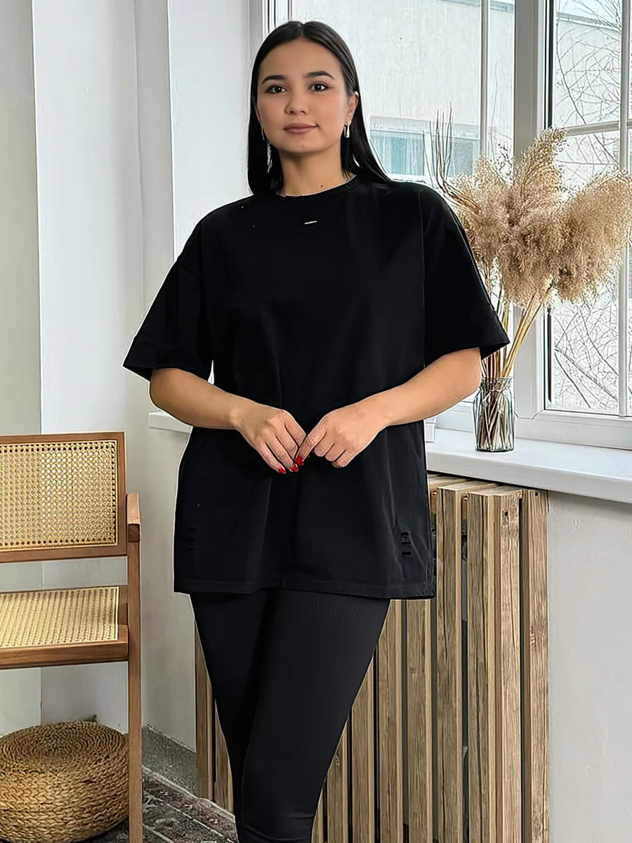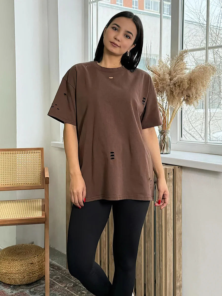 Upgrade your wardrobe with our stylish and comfortable Letter Printed Worn Short Sleeve Women's T-shirt! Featuring a unique design and soft, breathable fabric, this t-shirt is perfect for any casual occasion. Make a statement and show off your fashion sense with this must-have piece!